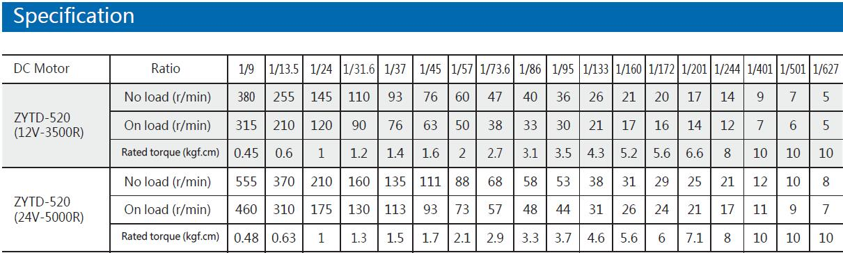 ZYTD520 6-24V 37MM Redüktörlü DC Motor Teknik Döküman Datasheet